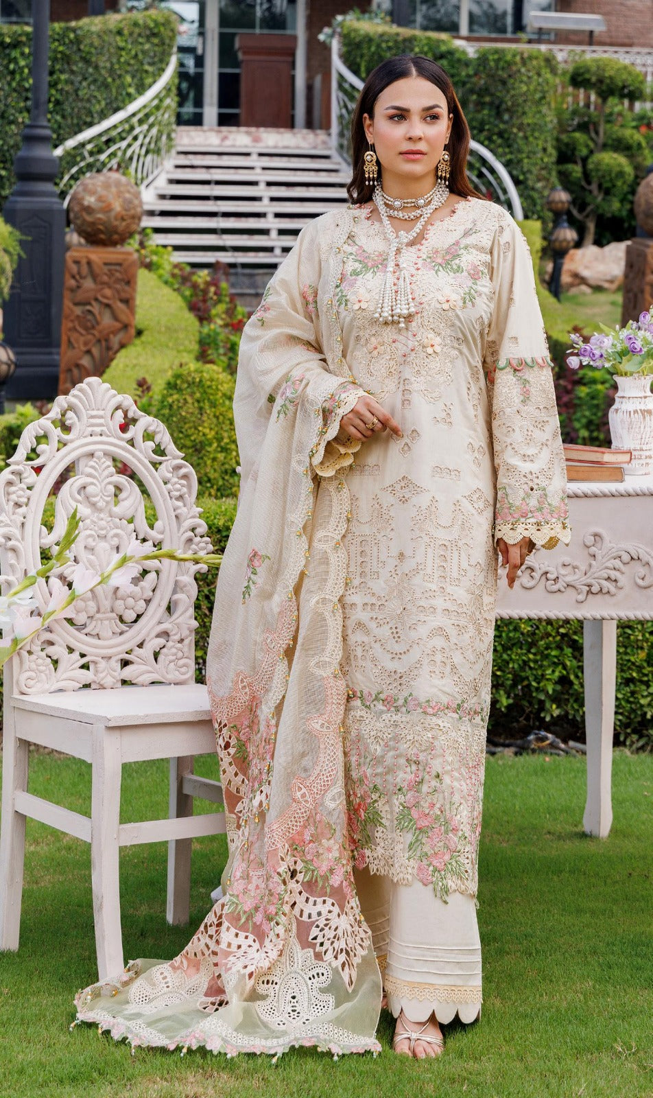 This outfit features a beautifully embroidered chikan shirt—front, back, and sleeves all matching in intricate detailing. The neckline is tastefully embroidered to draw attention while remaining modest. It includes two types of daman designs for the front to give you styling options. The sleeve lace and border are also embroidered, adding more richness. The Rajjonet dupatta is already stitched, flowing gracefully and tying the look together. The dyed cambric trouser balances the busy embroidery, making this a thoughtful blend of tradition and comfort. Perfect for semi-formal wear with a touch of luxury.