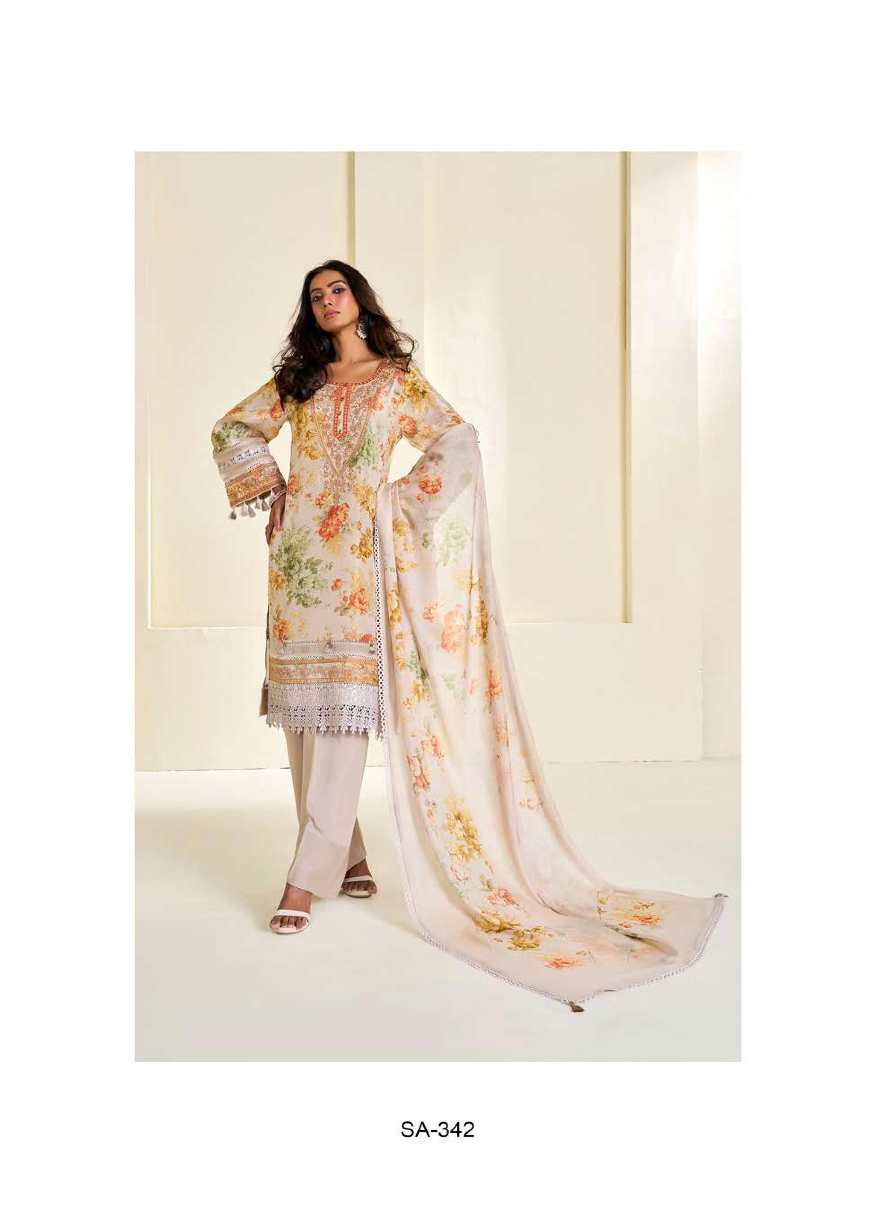DIGITALLY PRINTED PURE MUSLINE TISSUE WITH LACED BORDER.