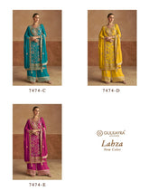 Gulkayra Designer Present New Catlog..!! LAHZA NEW COLOUR 7474 E Fabric Detail…!!Top - Real Chinon Dupatta- Real Chinon Plazoo - Real Chinon Size:-XL*Rate - £80- £80.00