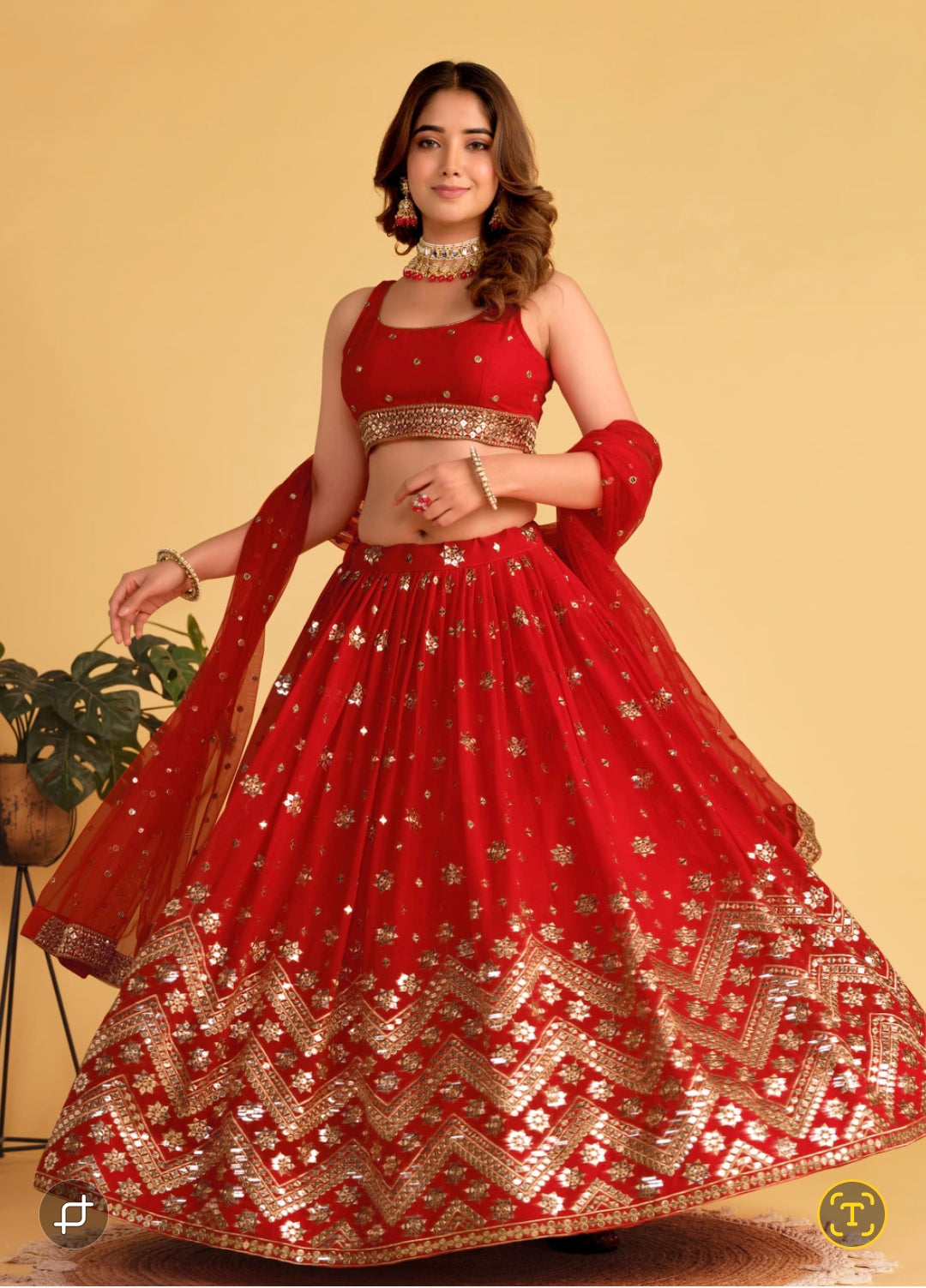 Beautiful Sequins & Zari Embroidery work on Lehenga & Choli